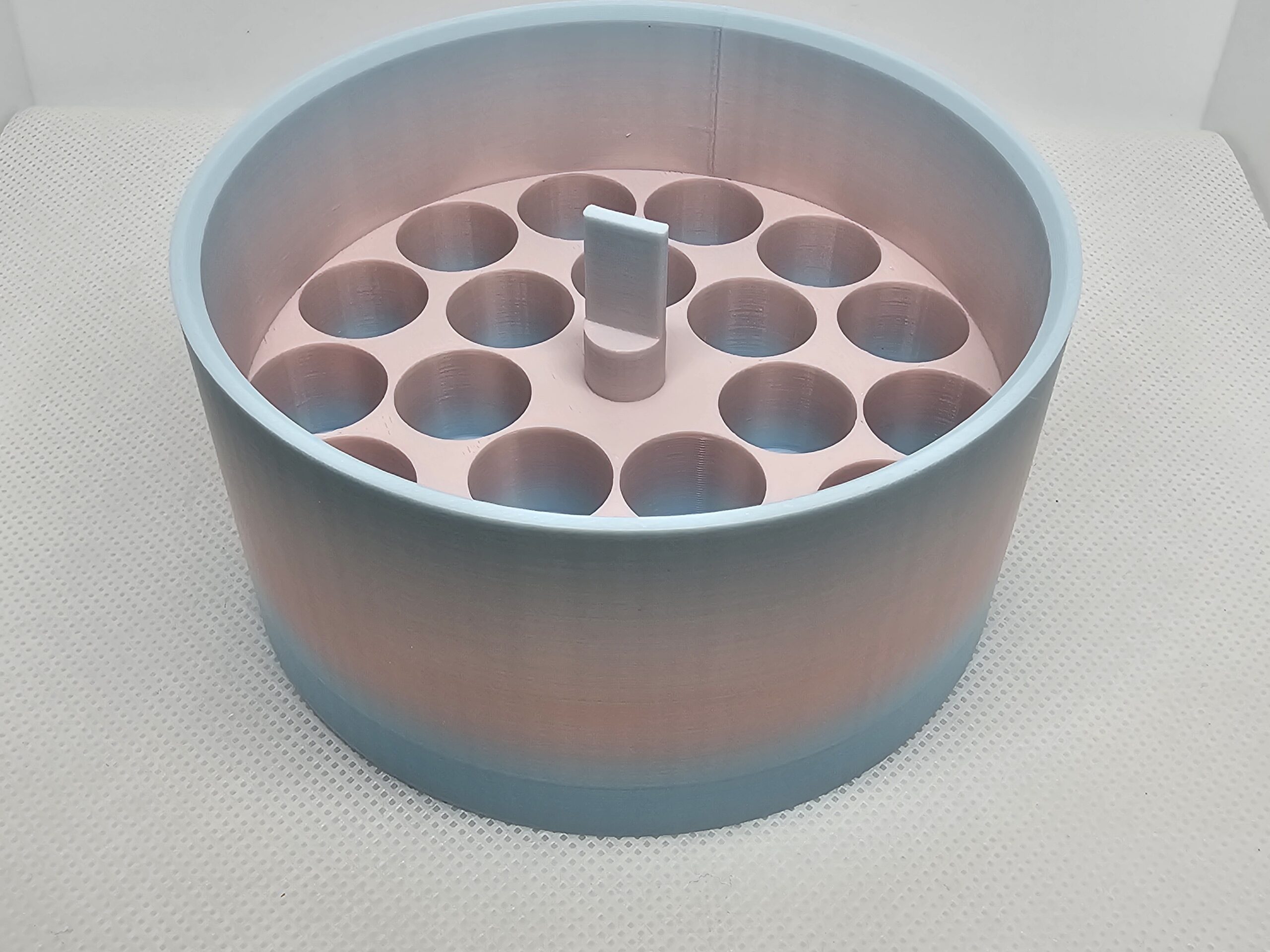 Insulated peptide storage holds 20 3-ml vials. Room for cold pack below peptides… perfect for travel, or just to store in your freezer to reduce temperature fluctuations!!