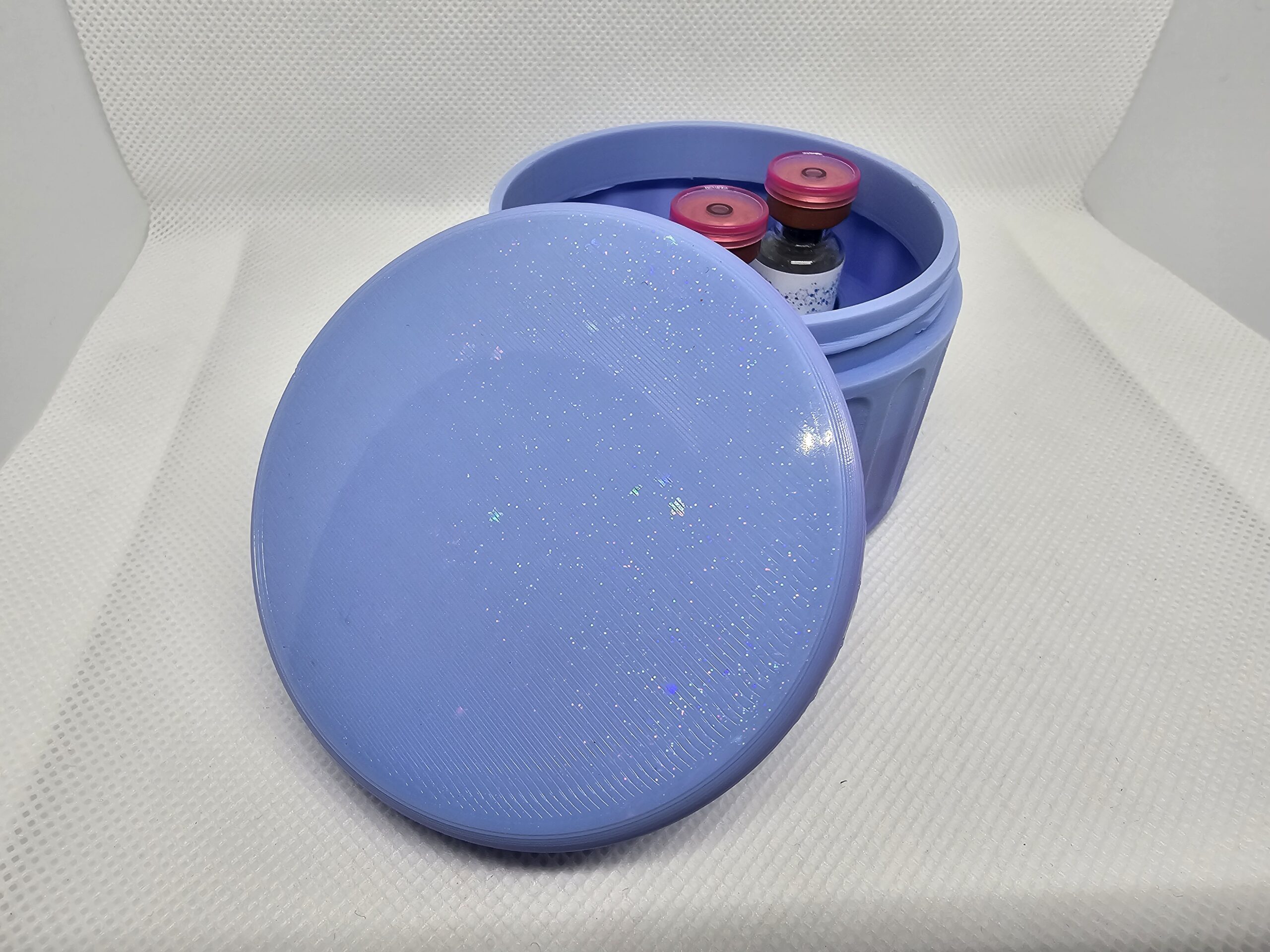 Very cute peptide storage case!  Holds 8 3ml vials.  Hard round case with fluted sides and a threaded top!  Color may vary slightly than what is pictured, especially for gradients.